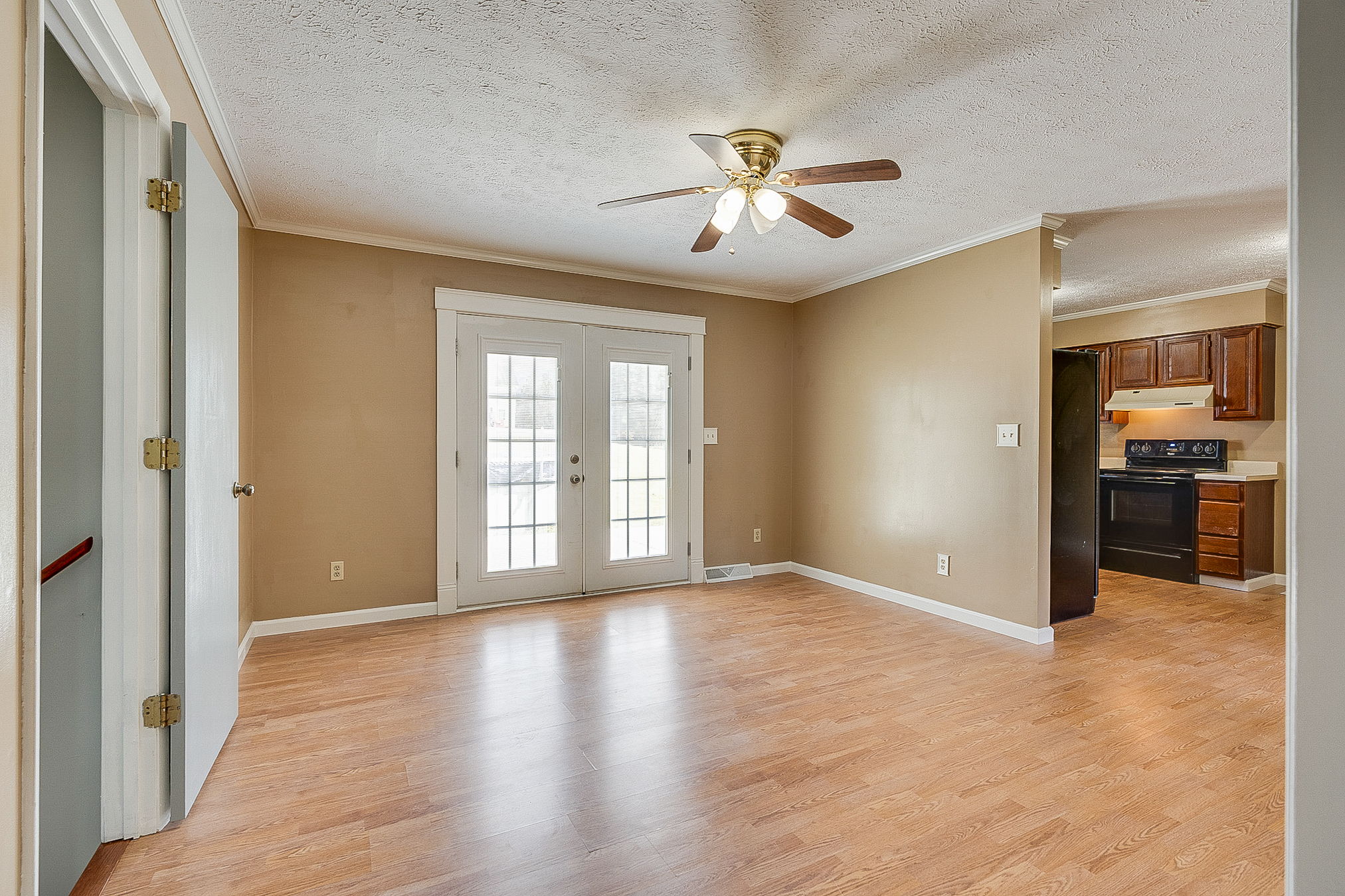 This 4-bedroom, 2-bath tri-level home sits on 2.6 acres +/- of cleared, usable land with scattered mature shade trees. Built in 1985, it offers a practical layout with plenty of space for everyday living. The home features two separate living areas with a main level living room and a downstairs den, updated bathrooms, plus brand-new flooring on the lower level and fresh carpet in the upstairs bedrooms. The fourth bedroom was previously used as a music room, making it a flexible option for a studio, office, or hobby space. Outside, enjoy a large 27' round above-ground pool with Trex decking, along with a detached garage (18x25) and carport for storage and parking. The acreage provides room to spread out, garden, or simply enjoy the outdoors. This property offers a comfortable home with useful updates already in place and the opportunity to make it your own. Buyer/Buyer's Agent to verify any and all information, taken from public records and seller. All information herein deemed reliable but not guaranteed.